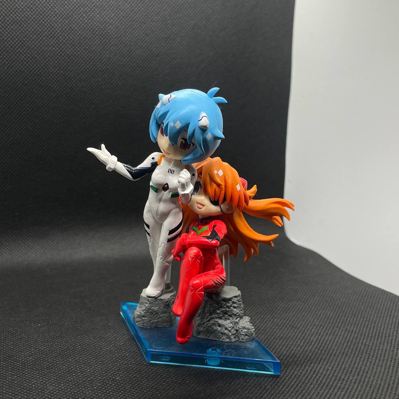 DescriptionLimited edition C-style figure set featuring Rei and Asuka with their respective Evangelion units on a clear blue base.